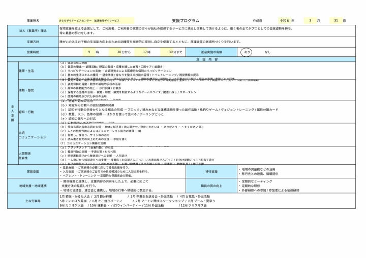 発達支援の本人支援5領域に応じたプログラムについて